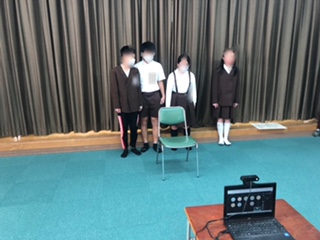 朝に少し雨が降っていました。今日の児童朝会はオンラインで行いました。
