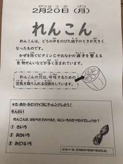 今日の給食カレンダーには、れんこんのことが書かれています。