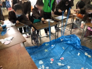 魚釣りのゲームです。みんな夢中でつりあげています。