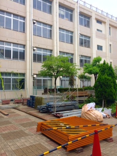 校舎の空調工事もずいぶん進みました。足場の解体工事も始まりました。2学期が楽しみに登校してください。