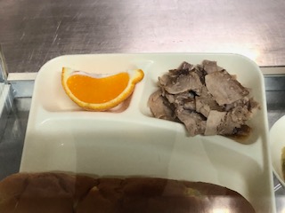 今日のパンはさつまいもが入っています。デコポン(果物)もついています。