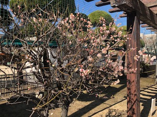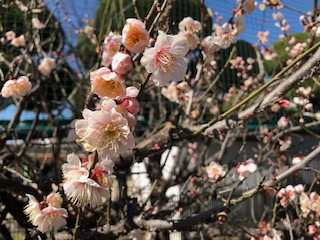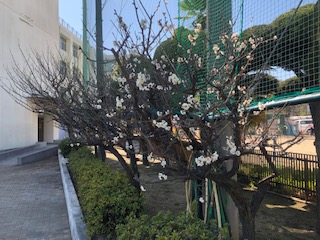 正門からのプロムナードの梅が開花しました。きれいな花を咲かれています。春の足音が聞こえてくるようですね。