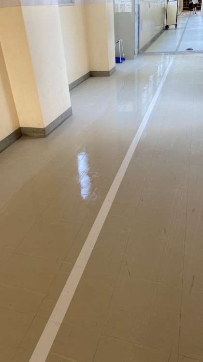 6年生が清掃した後、廊下がピカピカに光っていました。