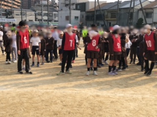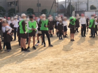ビブス(ゼッケン)をつけているのが6年生です。6年生が児童集会に参加するのはこれが最後となります。