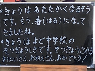 今日は淀中学校(他の大阪市立中学校も)の卒業式です。本校の卒業生、本校児童のお兄さん、お姉さんのご卒業を心よりお祝い申し上げます。おめでとうございます。