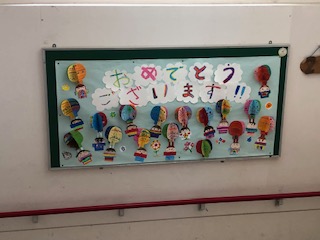 写真下は6年生の担任からのメッセージです。各クラスの子どもたちの写真が貼られています。