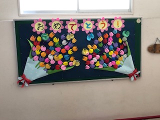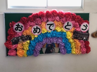 メッセージの「お」と「う」の下がクラス写真、中央下が担任の写真です。