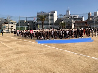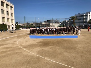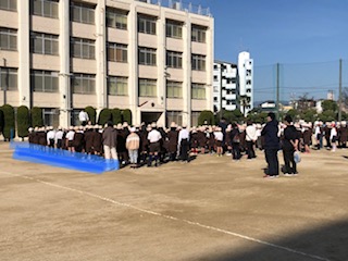 ◯今日の児童朝会では、はじめに5年生の転入生の紹介をしました。