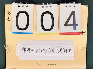 修了式(3学期終業式)まであと4日となっています。(春分の日も含んでいます。修了式当日は含みません。)