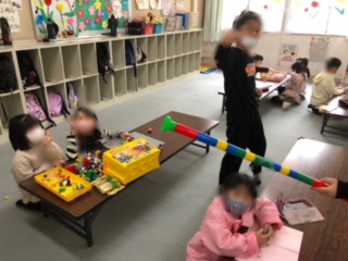 春休みをいきいき活動で過ごしている子どもたちです。部屋で遊んでいます。