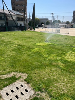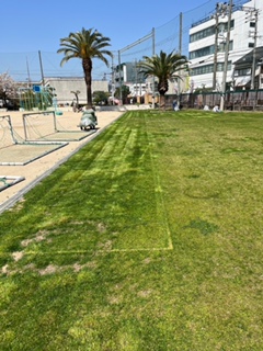 芝生整備の実行委員会の皆様のおかげで、芝生がとてもきれいになりました。