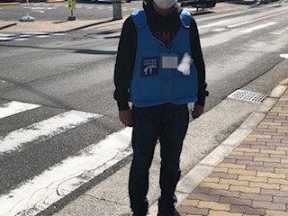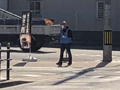 写真中と下は、交番の警察職員の方です。他にもPTA役員・委員の方々、地域の方々などが見守り活動をさせておられます。