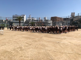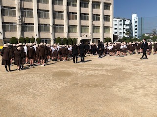 運動場で今年度・1学期の始業式をしました。1年生は入学式をしましたので参加しておりません。