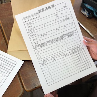 本日、児童連絡票が配られました。写真下の右の紙は記入例が書かれたものです。