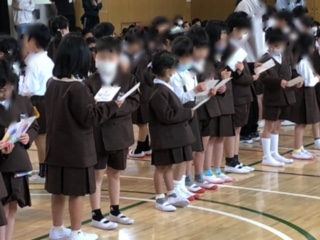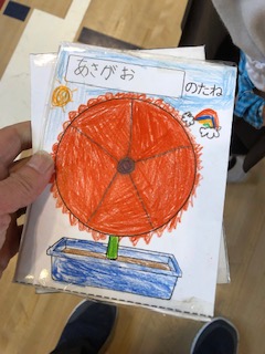 2年生は昨年、育てたあさがおの種を1年生へプレゼントしました。