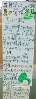 2学期米飯給食のスタートです。五目汁には冬瓜が入っています。旬の食材を取り入れています。