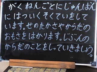 学年ごとに発育測定をしています。身長や体重などを測ります。