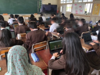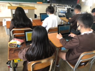 一人一台端末を使ってローマ字入力の練習をしています。