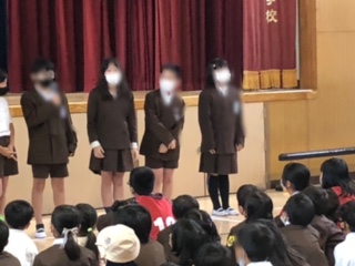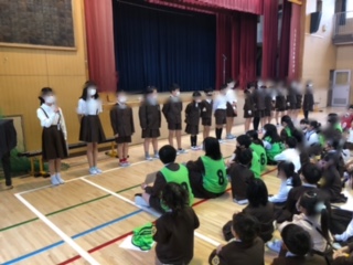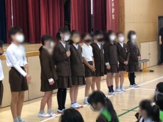 じゃんけんゲームの後、前期代表委員の子どもたちが自己紹介をしました。