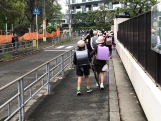 地区別に集団で下校していきます。安全な通学路などを確認します。