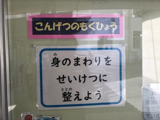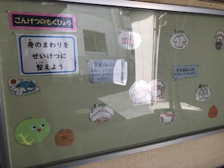 給食室には、今月の給食目標、給食室での約束などが掲示されています。