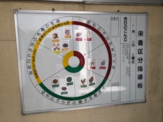 その横には、栄養区分指導板があり、その日の献立の食材を栄養区分ごとに表示しています。