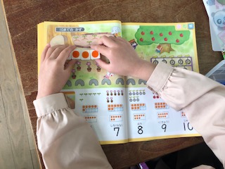 ブロックを使って算数の数の学習をしています。
