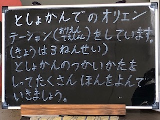 ◯毎週火曜日に学校司書の方がクラスごとに図書オリエンテーションをしておられます。今日は3年生です。