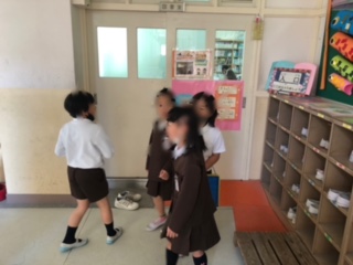 職員室、校長室、保健室、図書館、多目的室などをめぐっていきます。