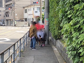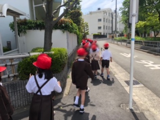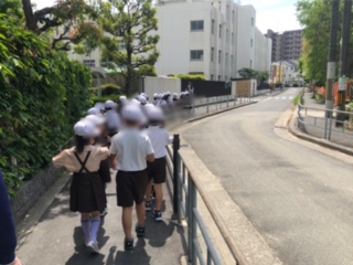 コースは、通用門、歩道橋、スーパー前の信号、大和田幼稚園、中央公園向かい、通用門です。