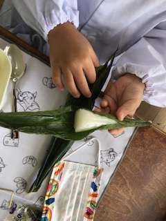 こどもの日にちなんで出されたちまきをうまくむいて食べていました。