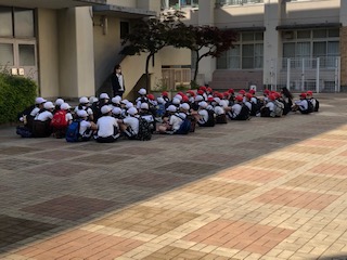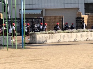 5年生は児童朝会の時に、正門から遠足へと出発していきました。