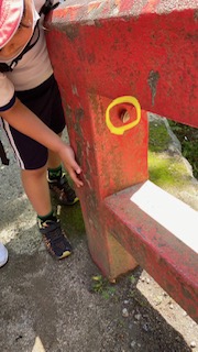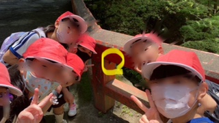 五月山公園は自然が豊かな場所です。カタツムリも見つけました。(黄色い丸)