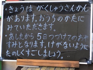 ◯今日は5時間目に学習参観を行います。その後、学級懇談会となります。
