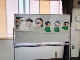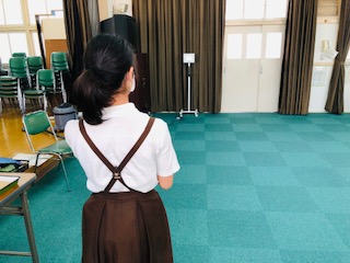 クラスごとに視力検査を行っています。機会を使って検査しています。