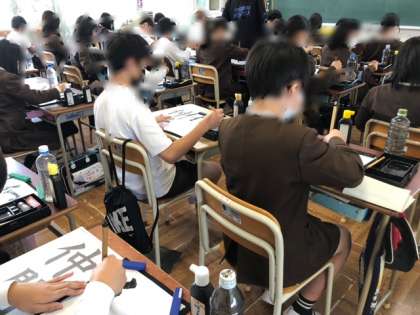 静かに習字に取り組んでいます。