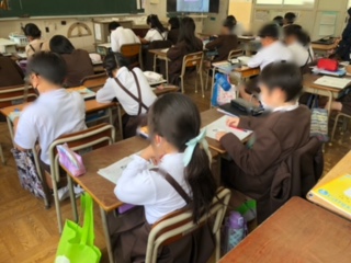 習熟度別に分けての少人数指導です。空いている机で、子どもたちの人数が少なくなっていることがよくわかりますね。
