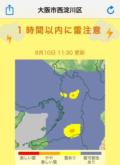 やはり、雷の注意報です。運動場の使用を中止しました。本校では、カミナリアラートを活用して、子どもたちの安全確保をしています。