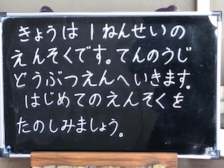 今日は1年生が小学校はじめての遠足で天王寺動物園へ行きます。いいお天気ですね。楽しんでね。