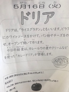 今日の給食には、カレードリアがでました。りんご(缶詰)もつきました。