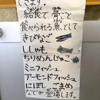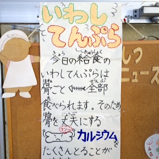 いわしの天婦羅は、香ばしく揚げられており、頭の先から尻尾の先まで、まるごと美味しく食べられます。カルシウムがいっぱいの献立です。