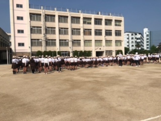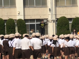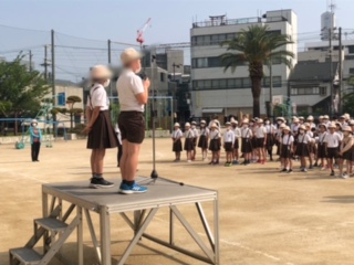 児童朝会では、校長からあいさつの大切さについての話がありました。
