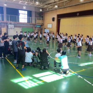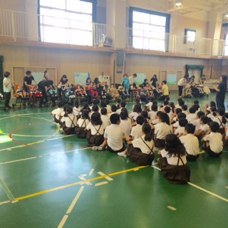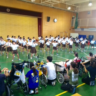 両校代表児童のあいさつの次は、西淀川特別支援学校児童の歓迎の歌「ハローハロー」を贈っていただきました。お返しに大和田小学校児童は運動会で練習したダンスを披露しました。