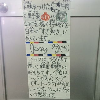 今日の給食は、韓国・朝鮮の料理をいただきます。