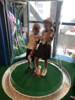 これも大人気の大きなシャボン玉です。中に入って外側にシャボン玉(膜)ができています。