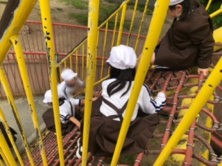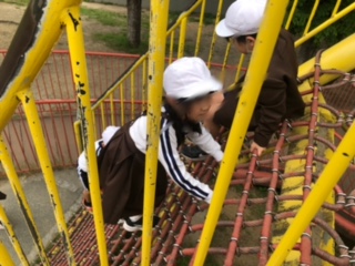キッズプラザ隣接の扇町公園でお弁当、おやつを食べた後はお遊びタイムです。ここにも楽しい遊具がいっぱいあります。