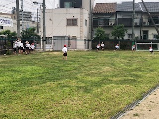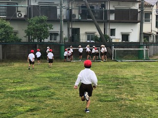 早速、休み時間に子どもたちが芝生で楽しく気持ちよく遊んでいました。