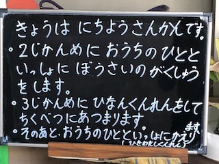 ◯3時間目に避難訓練をします。その後、地区別の教室に集まります。
