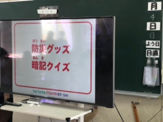 防災グッズについてクイズも取り入れながら学んでいます。
