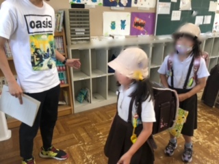地区別の教室に分かれて、保護者の方に児童を引き渡す訓練をしました。